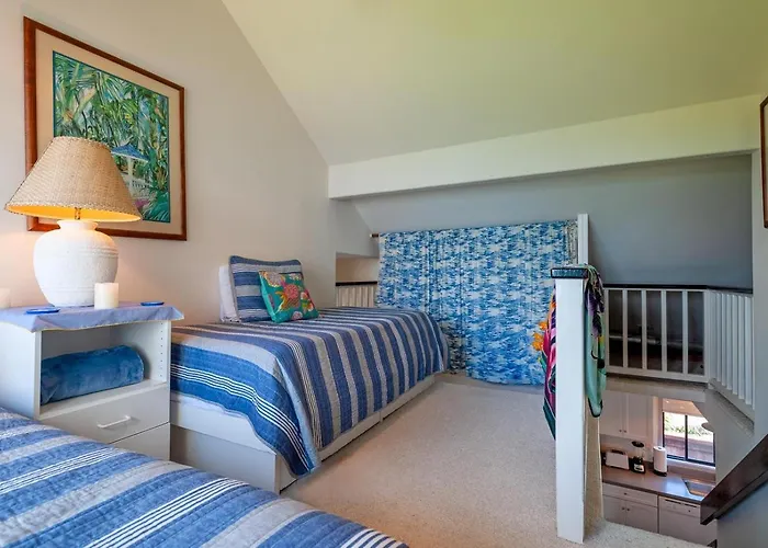 Hideaways Beach can be reached within 20 minutes' walk and Turtle cove in 25 minutes. It is 1 km from the centre of Princeville. Guests can be wined and dined in Happy Talk Lounge Restaurant & Bar, Nalu Kai Grill and Bar, located in the neighbourhood. You can get to Makai Golf Course in a few minutes by car. The nearest airport is Lihue, 50 km from Hanalei Plantation Home.
